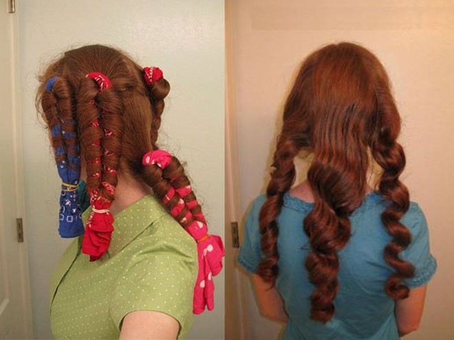 Если дома завалялись старые майки, ненужные носки и тряпочки, не торопись их выкидывать. Они станут отличной заменой бигуди.